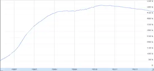 Anzahl der Einträge im deutschsprachigen Teil des ODP