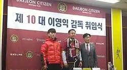 Den angepeilten Wiederaufstieg verpasste der Verein in der Saison 2016 mit Platz 7 deutlich.[24] Größter Saisonerfolg war das Erreichen des Achtelfinals im koreanischen Pokal, in dem Daejeon knapp mit 2:3 am Incheon United FC scheiterte. Aufgrund der verpassten Rückkehr ins Oberhaus wurde der auslaufende Vertrag von Choi Mun-sik nicht verlängert. Der Verein stellte mit Lee Yeong-ik seinen Nachfolger vor.