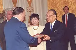 - ↑ People's Daily Online -- Chinese state councilor meets Japanese guests. Abgerufen am 19. Oktober 2021.