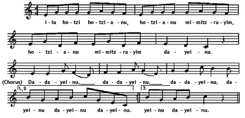 - ↑ Dayenu, Haggadot.com. Abgerufen am 11. Januar 2022.