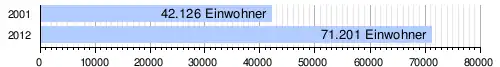 Im Stadtgebiet ohne den ländlichen Siedlungen lebten bei der Volkszählung 2012 29.293 Einwohner in 3847 Haushalten,[2] bei der Volkszählung 2001 18.875 in 2734 Haushalten[9] und bei der Volkszählung 1988 14.564 in 2185 Haushalten.[10] Bei der Volkszählung 1977 waren es 10.688 Einwohner.[11]