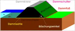 - Dammschulter – Dammbereich am oberen Teil der Böschung