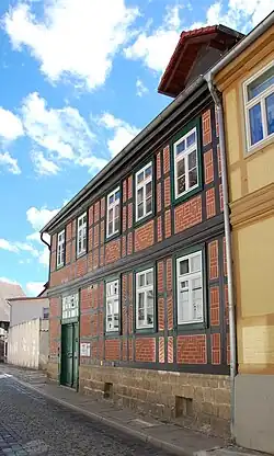 Hofseitig besteht eine kleinteilige Fachwerkbebauung.