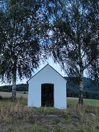 Kapelle neben der Kreisstraße SR13 im Weinfeld westlich von Dammersdorf, auf dem Gemeindegebiet von Haselbach