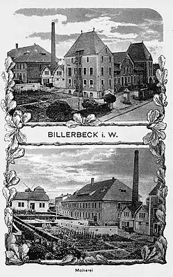 Am 29. September 1884 gründete Josef Suwelack die moderne Dampfmolkerei mit 55 Landwirten aus der Umgebung von Billerbeck. Der Eintrag ins Handelsregister erfolgte mit einem Kapital von 19.800 Mark und einem Wert einer einzelnen Aktien von 300 Mark.[1] Anders, als viele andere ländliche Molkereien (vergleiche Dampfmolkerei Fahrenwalde), wurde sie allerdings nicht als eine bäuerliche Genossenschaft, sondern als Aktiengesellschaft gegründet. Durch den konsequenten Einsatz innovativer industrieller Fertigungsmethoden konnte die Molkerei ihren Umsatz in wenigen Jahren stark ausbauen. Waren es kurz nach der Gründung im Jahr 1885 erst 157 Milchlieferanten, so stieg deren Zahl bis 1908 auf 1151. Gleichzeitig setzte die Molkerei von Beginn an auf die Dampf-Zentrifuge, deren Erfindung 1879 gerade mal fünf Jahre zurücklag. Durch sie konnte eine schnellere Entrahmung und damit auch die Verarbeitung von größeren Milchmengen garantiert werden. So verkürzte sich der Verarbeitungsprozess des Entrahmens von mehreren Tagen auf eine Stunde.