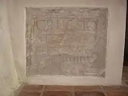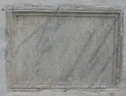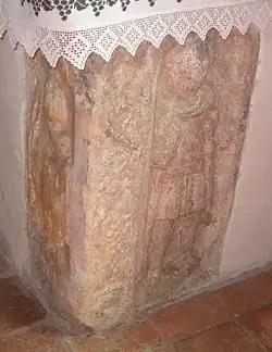 Am rechten Seitenaltar der Kirche ist ein Marmorquader eingemauert, auf dessen Relief u. a. zwei römische Soldaten zu sehen sind.
