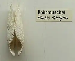- ↑ MolluscaBase: Pholas dactylus Linnaeus, 1758
