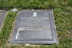Am 4. Juni 2009 wurde David Carradine tot in einem Hotelzimmer in Bangkok aufgefunden. Der Tod erfolgte durch einen autoerotischen Selbsttötungsunfall.[5] Nach Angaben seines Managers hielt sich Carradine zu Dreharbeiten für den Film Stretch des französischen Regisseurs Charles de Meaux in Thailand auf. Carradine wurde am 13. Juni 2009 auf dem Forest-Lawn-Friedhof in Hollywood beigesetzt.[6]