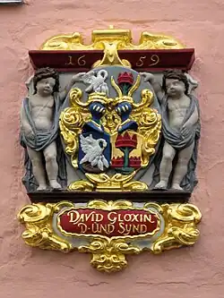 1595 ließ David Gloxin der Ältere sich als Stadtsekretär und Organist in Burg auf Fehmarn nieder, wo er später Ratsherr und 1630 Bürgermeister wurde. Nach dem Tod seiner ersten Frau heiratete er noch dreimal. Vier jüngere Halbgeschwister und die zweite Stiefmutter starben 1629 an der Pest, der die Hälfte der Einwohner von Fehmarn zum Opfer fielen. David Gloxin der Ältere heiratete anschließend noch ein viertes Mal und bekam einen weiteren Sohn, Benjamin. Er starb bei seinen älteren Söhnen in Lübeck. Sie errichteten ihm ein Epitaph in der Nikolaikirche in Burg.[4]