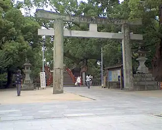 Der Schrein Temman-gu ist eine 905 errichtete Kultstätte für den 903 in der Verbannung hier verstorbenen Staatsmann Sugawara Michizane (Tenshin), der als Gottheit der Gelehrsamkeit besonders von Schülern und Studenten verehrt wird. Die Schreingebäude stammen aus dem Jahre 1591. Davor stehen eine Rinderstatue aus Bronze und ein Pflaumenbaum, der angeblich seinem Meister aus Kyoto hierher durch die Luft folgte.
