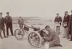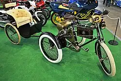 1895 gelangten die ersten Tricycles mit diesem Motor in den Verkauf.[10] Allerdings war der Motor mit dieser Leistung eher als Hilfe am Berg nützlich.[11] Mehrere Autoren nennen 1896 als Einführungsjahr.[12][13][14][15]