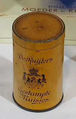 - Anlässlich der Geburt von Prinzessin Beatrix im Jahr 1938 brachte Cornelis de Ruijter eine übergroße Dose mit orangefarbenen Muisjes (Anisstreusel) raus und begründete damit eine niederländische Esstradition.[6][7]