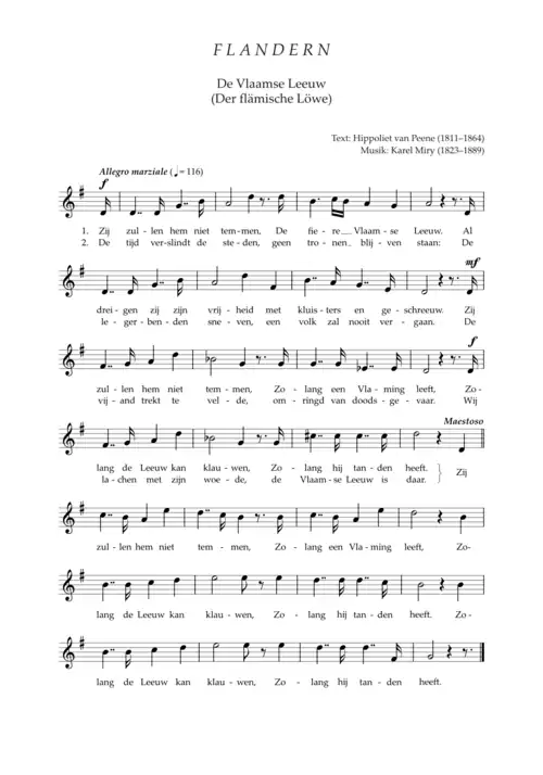 Drei Tage nachdem Flandern am 3. Juli 1973 per Gesetz kulturelle Autonomie erhalten hatte, bestimmte der Kulturrat für die niederländische Kulturgemeinschaft das Lied von van Peene und Miry zur Nationalhymne, das schon seit Beginn des 20. Jahrhunderts in der Bevölkerung etabliert und beliebt war. Bei offiziellen Anlässen sollten allerdings nur die ersten zwei Strophen gesungen werden.