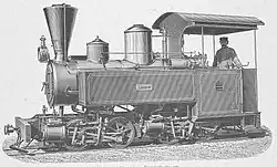600 mm | 9,5 t | 12 t | L’Avenir, später Sergent Bobillot | ![]() Tubize 687/1887, für 8 % Steigung, Radien von 20 m und Schienen mit 9,5 kg/m geeignet. Diese Lok unterschied sich geringfügig von den auf der Decauville-Bahn der Pariser Weltausstellung von 1889 vorgeführten Lokomotiven.[5][9] |