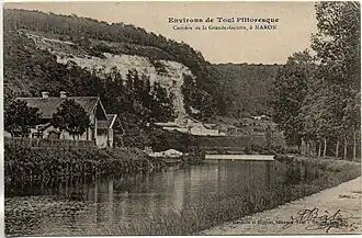 Im Grande-Goutte-Steinbruch wurde Kalkstein (Travertin, Castine Maron) als Flussmittel für die Hochöfen von Neuves-Maisons abgebaut. Bei hohen Temperaturen zerfällt er in Kohlendioxid und Calciumoxid, das Teil der Schlacke ist, in der sich die Verunreinigungen aus den Rohstoffen sammeln.[1]