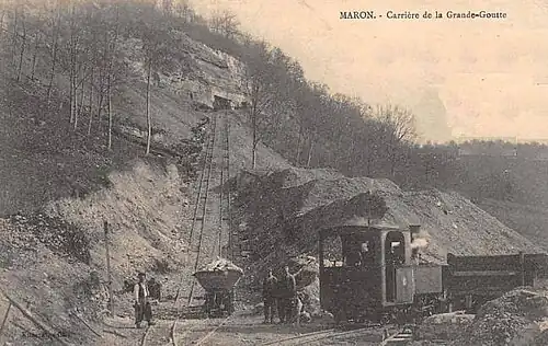 Vom Steinbruch aus wurden die Wagen über eine von Decauville gelieferte Standseilbahn herabgelassen, die der Maschinenbauer Colson aus Ludres zusammenbaute. Diese Wagen zog die Dampflok entweder zu einer Rampe entlang des Kanals oder zu einer anderen Rampe am Bahnhof Maron, um dort automatisch in Boote oder Waggons entladen zu werden.