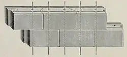 Die Pressen wurden noch bis mindestens 1922 vermarktet.[8] In der Nachkriegszeit des Ersten Weltkriegs gerieten sie aber für Uferbefestigungen außer Gebrauch, als immer mehr Formsteine industriell hergestellt wurden, anstatt sie vor Ort auf der Baustelle zu formen.