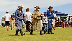 - ↑ Mongolian Traditional Cloths ( vom 3. November 2012 im Internet Archive) Mongolia today (englisch).