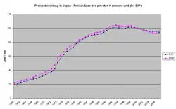 Seither hat es eine Deflation insbesondere seit den frühen 1990er Jahren in Japan gegeben.