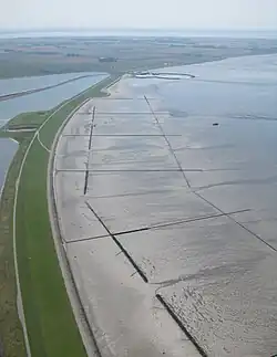 Abschlussdeich zwischen IJsselmeer (rechts) und Nordsee (links)