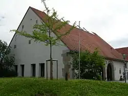 Die spätgotische Kirche wurde einer Inschrift an ihrer Empore zufolge im Jahr 1495 eingeweiht. Das Datum ist zwar urkundlich nicht belegt, eine dendrochronologischen Untersuchung im Jahr 1982 ergab aber, dass das für den Dachstuhl verwendete Holz zwischen 1494 und 1495 geschlagen wurde. Der Kirchturm stammt von einem erstmals 1353 genannten Vorgängerbau.[22] Im Inneren der Kirche befindet sich der Flügel einer Altartafel aus dem letzten Jahrzehnt des 15. Jahrhunderts, der von dem Kunsthistoriker Hans Rott dem Esslinger Maler Matthias Ulin-Wolf dem Jüngeren († 1536) zugeschrieben wurde und bis 1811 zur Kapelle des damals abgebrochenen Esslinger Katharinenhospitals gehörte.[23] Der Altarflügel zeigt auf der Innenseite die Heiligen Agnes und Christophorus, auf der Außenseite das Motiv der Apostelaussendung.[24] Sehenswert sind auch vier von Hans Gottfried von Stockhausen entworfene Kirchenfenster. Das südliche Seitenfenster wurde 1961 eingeweiht, die drei Chorfenster stammen aus dem Jahr 1982.[22]