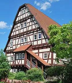 Das traufständige Fachwerkgebäude mit Krüppelwalmdach in der Mittleren Straße 17 ist Teil einer ehemaligen geschlossenen Hofanlage und inschriftlich mit 1790 bezeichnet. Teile des Hauses gehen bis in das 16. Jahrhundert zurück. Es war Sitz der Hirsauer Kastenvögte in Ditzingen, Ende des 18. Jahrhunderts wurde die Nordseite mit einer massiven Sockelwand versehen. Bemerkenswert sind die klassizistischen Türrahmungen mit dem Mühlrad als Zunftzeichen des Schlossmüllers, der damals Eigentümer des Anwesens war.