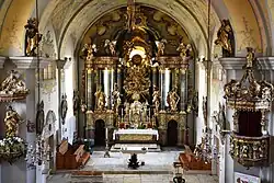 Die fünf Altäre der Kirche schuf der Tischler Andrä Pirchner, die Skulpturen Johann Pult und Gregor Lederwasch IV. Die Orgel aus 1744 bekam 1892 ein neues Werk von Albert Mauracher, die jetzige Orgel aus dem Jahr 2007 stammt von Orgelbau Kögler aus St. Florian.[2]