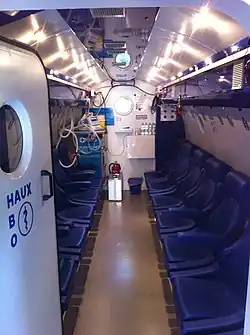Eine Druckkammer besteht meist aus einer Hauptkammer, in der die Behandlung stattfindet, und einer Nebenkammer, die als Personenschleuse dient. Vielfach existiert zusätzlich noch eine sehr kleine Kammer mit nur wenigen Litern Inhalt, die dazu dient, medizinische Instrumente oder Medikamente ein- und auszuschleusen.[1]