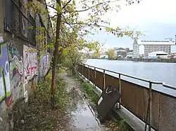 Die Halle wurde in den 1920er Jahren direkt am Spreeufer gebaut und diente als Gaswerk einer ehemaligen Gasfabrik und als Lager für Bauteile. Mit dem Bau der Berliner Mauer befand sie sich direkt im Grenzbereich, auch „Todesstreifen“ genannt, weswegen die zur Spree hinabführenden Stufen zu dieser Zeit zugemauert waren. Grenzbeamte sollen die Halle vermutlich als Lager genutzt und im Keller einen Bunker gebaut haben.[4]