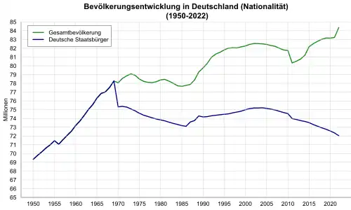 - ↑ Bevölkerung nach Nationalität und Geschlecht 1970 bis 2022 in Deutschland. Statistisches Bundesamt, abgerufen am 27. Juni 2022.