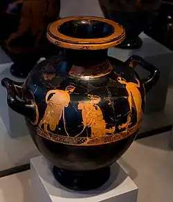 - ↑ Ehemals Berlin, Antikensammlung Inventarnummer F 1655, seit 1945 im Staatlichen Historischen Museum Moskau; Ingrid Krauskopf: Amphiaraos Nr. 7. In: Lexicon Iconographicum Mythologiae Classicae (LIMC). Band I, Zürich/München 1981, S. 694.