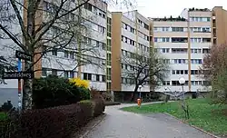 - ↑ Erhard Gstöttner, Christopher Buzas: Die Dornacher Straße und ein Sonderfall des Wohnbaus. In: Oberösterreichische Nachrichten. OÖ. Online GmbH & Co.KG, 26. Juni 2015, abgerufen am 17. Juli 2022.