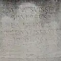 Das Denkmal wurde am 27. Juni 1948 eingeweiht und trägt die Inschrift: À la Suisse généreuse / la France reconnaissante / 1939–1945 (deutsch: «Das dankbare Frankreich / der grosszügigen Schweiz / 1939–1945»). Zur Einweihung waren zahlreiche Behördenvertreter, u. a. Regierungspräsident Peter Zschokke (1898–1986) und Édouard Herriot, Präsident der französischen Nationalversammlung, anwesend.