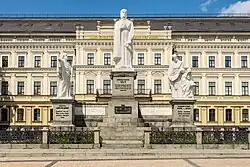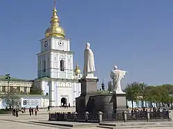Es steht auf dem Michaelplatz nahe dem St. Michaelskloster im Kiewer Rajon Schewtschenko.