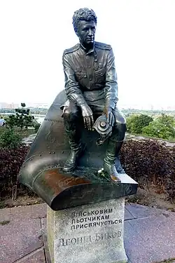 - ↑ Пам'ятник «Військовим Льотчикам» («Леонід Биков»). In: sculpture.salon. Abgerufen am 14. September 2024 (deutsch: Denkmal der „Militärpiloten“ („Leonid Bykow“)).