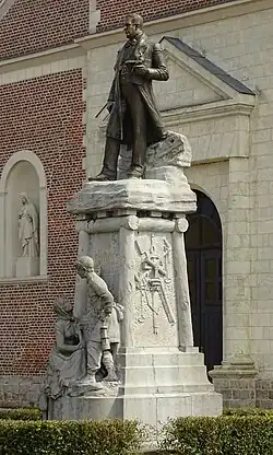 (Übersetzung: Charles Mathieu, Ritter der Ehrenlegion, wurde 1798 in Anzin geboren und war Bürgermeister von Lourches. Er gründete 1832 die Minengesellschaft von Douchy und 1849 die Minengesellschaft von Courrières, die im Bassin des Pas-de-Calais die ersten Kohleminen ausbeuteten. Das Denkmal soll auch den Minenarbeitern [...] Ehre erweisen.)