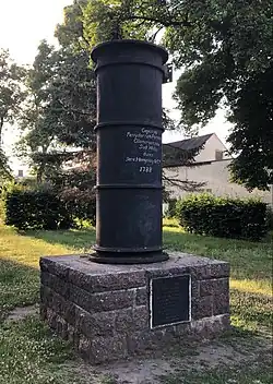 Auf der nach Osten weisenden Vorderseite des Denkmals befindet sich auf dem Zylinder die Inschrift: