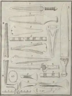 - Otto Uenze: Die frühbronzezeitlichen triangulären Vollgriffdolche (= Vorgeschichtliche Forschungen. Band 11). De Gruyter, Berlin 1938, S. 80ff.