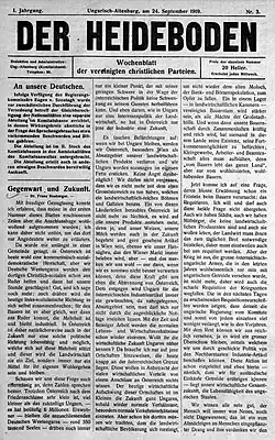 - ↑ Die Anschlussfrage. In: Der Heideboden. 10. September 1919, abgerufen am 2. Dezember 2021.