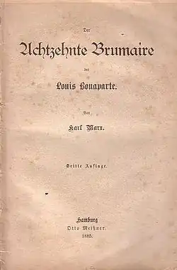 - Karl Marx: Der achtzehnte Brumaire des Louis Bonaparte. 2. Auflage. Otto Meißner, Hamburg 1869 (Digitalisat und Volltext im Deutschen Textarchiv)