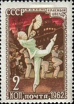 Choreographie und Bühnenbild von Wassili Tichomirow und Michail I. Kurilko. Das Ballett wurde in Die rote Blume umbenannt. Die erste Aufführung war am 24. November 1957 im Bolschoi-Theater in Moskau.