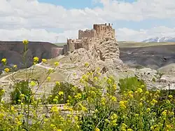 Eski Kahta (heute Kocahisar zu Füßen des berühmten Nemrut Dağı bei Adıyaman), ehemaliger Derebeysitz und Kreiszentrum, verlor im 19. Jahrhundert Verwaltung und Namen an den Marktort Kolik (heute Kahta).[57] Die dortige ruinierte Burgbastion auf einem schmalen Felsgrad gegenüber von Arsameia am Nymphaios (Eski Kale) heißt Yeni Kale ‚Neue Burg‘ oder Sultan Burcu ‚Sultansburg‘ und enthält Ruinen von Moscheen, Bädern, Geschäften und Wassertanks. Die Burg selbst stammt wohl aus der Mamluken-Zeit (Ende 13. Jahrhundert). 1859 revoltierte ein Abdal in Eski Kahtas Burg, der Aufstand wurde aber in kurzer Zeit unterdrückt.[58]