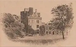 Das Haus, das vom örtlichen Architekten James Franklin Fuller entworfen worden war, hatte einen Hauptblock mit drei Stockwerken, einen vierstöckigen Turm, der sich durch dessen Mitte erhob, und einen zweistöckigen, teilweise geschwungenen Flügel. Das Gebäude war mit Zinnen und Maschikulis versehen.[1]