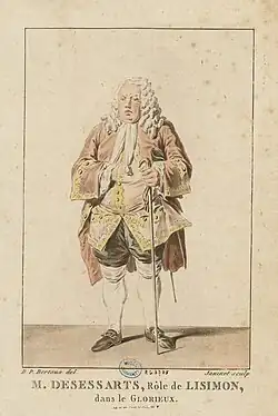 Als Schauspieler konnte Desessarts, trotz seines starken Übergewichts, glänzen. Jedoch trug ihm seine Leibesfülle allerhand Spott und Häme ein. Sein Kollege Dugazon trieb es so weit, dass es zur Forderung eines Duells kam. Am Austragungsplatz erschien dann Dugazon und sprach so beschwichtigend auf Desessarts ein, dass es zu keiner Auseinandersetzung kam.