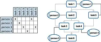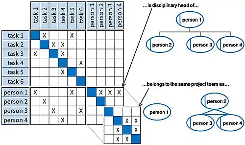 - ↑ Stefan Friedrich: Einsatzmöglichkeiten einer Design-Structure-Matrix im Rahmen des Strategischen Projektmanagements. GRIN Verlag, 2008, abgerufen am 18. Februar 2017.