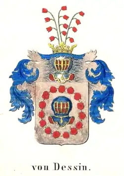 Die Familie von Dessin war in Mecklenburg östlich des Schweriner Sees begütert. Schon am 20. Dezember 1408 bezeugte Bischof Rudolf von Schwerin eine Vikarie an der Dobbertiner Klosterkirche unter dem Patronat des Knappen Nicolaus Dessin.[5] Zwischen 1454 und 1461 wurden Bernd Dessin und Frau Ermegard auf einem Hof in Ruest genannt. Weiterer früher Lehnsbesitz waren Leisten (14. Jahrhundert), Horst (1425), Schloss Daschow insbesondere Klein Daschow (1487–1621) sowie Penzlin (1506) südlich von Goldberg nahe Kuppentin, weiterhin Elmenhorst (1572–1628), Wangelin (1621) und Damhorst (1639).