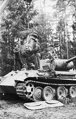 Nach einer Aufstellung in dem von Historikern des Militärgeschichtlichen Forschungsamtes erarbeiteten Werk Das Deutsche Reich und der Zweite Weltkrieg hatte das deutsche Heer bis zum Kriegsbeginn am 22. Juni 1941 3648 von 5694 Panzern und Sturmgeschützen seines damaligen Gesamtbestandes (≈ 64 %) an die Ostfront verlegt, darunter 3255 Panzerkampfwagen der Typen I–IV, 143 Panzerbefehlswagen sowie 250 von 377 Sturmgeschützen III. Infolge von Umorganisationen seit dem Westfeldzug 1940 hatte die Wehrmacht die Zahl ihrer Panzerdivisionen, nicht aber ihrer Panzer fast verdoppelt. Demgemäß musste sie ältere oder erbeutete ausländische Modelle weiter nutzen und stattete ein Drittel der Panzerdivisionen mit 157 tschechoslowakischen Panzer 35(t) und 651 Panzer 38(t) aus. Der Panzerkampfwagen I hatte 1939 fast die Hälfte aller deutschen Panzer gestellt und war danach oft zum Panzerjäger I oder anderen Zwecken umgebaut worden. Vom Originalmodell setzten die östlichen Panzerdivisionen 1941 noch 281 Stück, vom Panzerkampfwagen II 743, vom Panzerkampfwagen III 651, vom Panzerkampfwagen IV 444 Stück sowie Schützenpanzerwagen Sd.Kfz. 251 ein. Der Panzerkampfwagen IV mit seiner kurzen 7,5-cm-Kanone (L/27) war für Durchbruchsoperationen wenig geeignet. Die 250 Exemplare vom (der Artillerie unterstellten) Sturmgeschütz III mit der ebenso kurzen Kanone sollten hauptsächlich die Infanterie unterstützen.[73] Obwohl jede Panzerdivision über ein gepanzertes Infanterie-Bataillon verfügen sollte, waren die meisten wegen des Mangels an Fahrzeugen nur mit einer gepanzerten Schützenkompanie ausgestattet.[74]