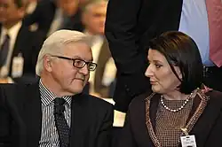 Nach einem Besuch bei den deutschen KFOR-Soldaten im Feldlager Prizren am 15. Juli 2005 erteilte die CDU-Parteivorsitzende Angela Merkel einer Loslösung des Kosovo von Serbien noch eine klare Absage. Nach weiteren fruchtlosen Statusverhandlungen mit Serbien erkannte Deutschland (Regierung Merkel I) aber die am 17. Februar 2008 von den Kosovaren ausgerufene Unabhängigkeit schon drei Tage später (20. Februar 2008) an.[8]