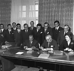 Nach dem Zweiten Weltkrieg und der Unabhängigkeit Marokkos wurden 1956 Beziehungen mit der Bundesrepublik Deutschland (BRD) aufgenommen. 1963 wurde ein Anwerbeprogramm für marokkanische Gastarbeiter gestartet. Im Jahre 1966 besuchte König Hassan II. bei einem Staatsbesuch die BRD.[5] Von 1972 bis zur deutschen Wiedervereinigung unterhielt Marokko auch offizielle diplomatische Beziehungen mit der Deutschen Demokratischen Republik (DDR).