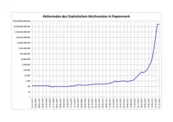 Die deutsche Inflation von 1914 bis November 1923 war eine der radikalsten Geldentwertungen in großen Industrienationen. Die Vorgeschichte dieser Hyperinflation findet sich in der Finanzierung des Ersten Weltkrieges. Mit dem Ende des Krieges 1918 hatte die Mark bereits offiziell mehr als die Hälfte ihres Geldwertes (Kaufkraft in ihrem Währungsraum) und ihres Wechselkurses verloren. Allerdings waren die Preise während des Krieges kontrolliert; auf dem Schwarzmarkt waren die Preise weit stärker gestiegen. Eigentliche Ursache der ab 1919 anziehenden Inflation, die ab Mitte 1922 in eine Hyperinflation überging, war die massive Ausweitung der Geldmenge durch den Staat in den Anfangsjahren der Weimarer Republik aufgrund der hohen Reparationszahlungen.[1]